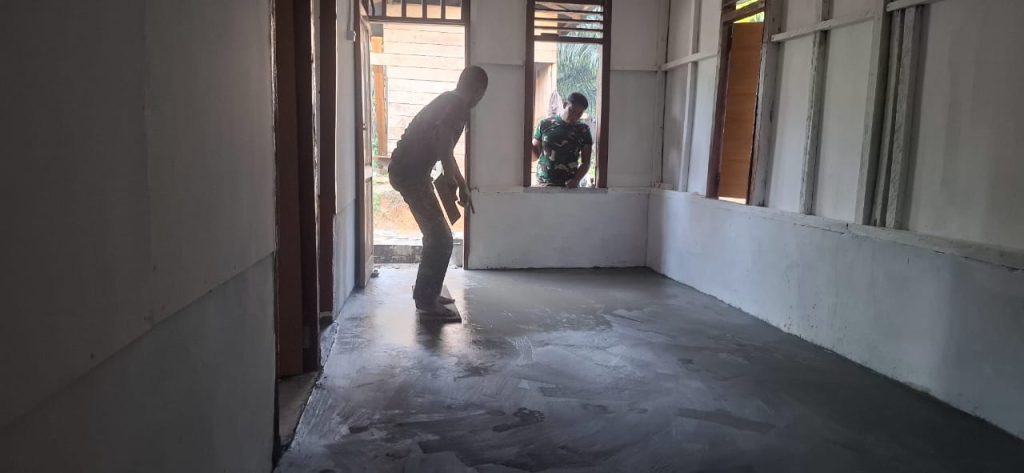 TAPTENG_Program TNI Manunggal Membangun Desa (TMMD) ke-126 Kodim 0211/TT kembali menunjukkan progres signifikan dalam meningkatkan kesejahteraan masyarakat. Salah satu kegiatan utama yaitu pembangunan Rumah Tidak Layak Huni (RTLH), kini telah memasuki tahap pengecoran lantai.