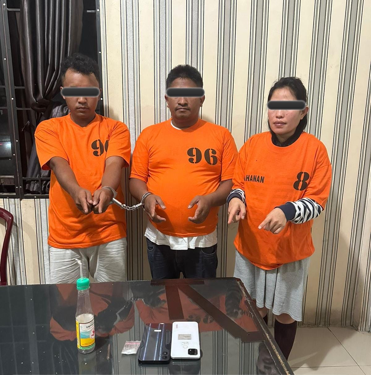 Penangkapan berawal dari informasi masyarakat mengenai adanya aktivitas mencurigakan di lokasi kejadian. Tim Satresnarkoba segera melakukan penyelidikan dan berhasil mengamankan ketiga tersangka di rumah kontrakan tersebut. Saat dilakukan penggeledahan, petugas menemukan barang bukti narkotika dan alat hisap yang diduga digunakan oleh para tersangka. Diketahui 2 dari 3 tersangka yakni RBG dan IHs merupakan residivis kasus narkotika.