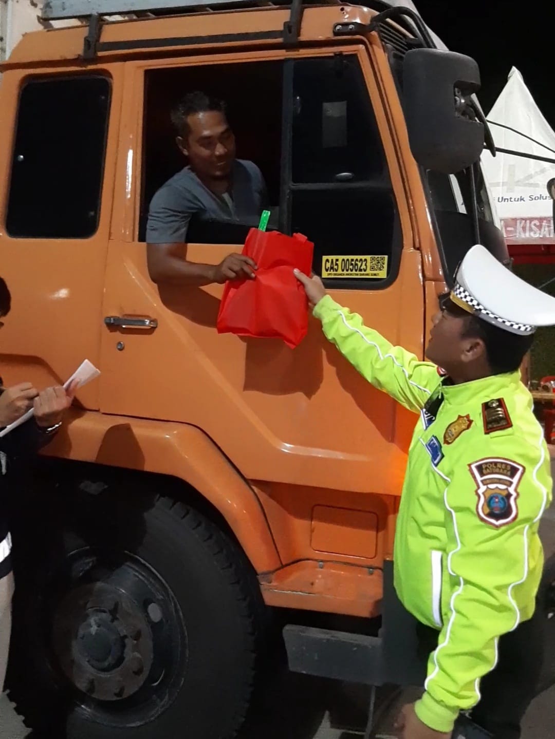 Selain memberikan edukasi keselamatan, petugas juga membagikan kopi kepada para sopir sebagai bentuk kepedulian sekaligus mengingatkan agar mereka beristirahat di Rest Area 145 A maupun Rest Area 118 A apabila merasa lelah selama perjalanan.
