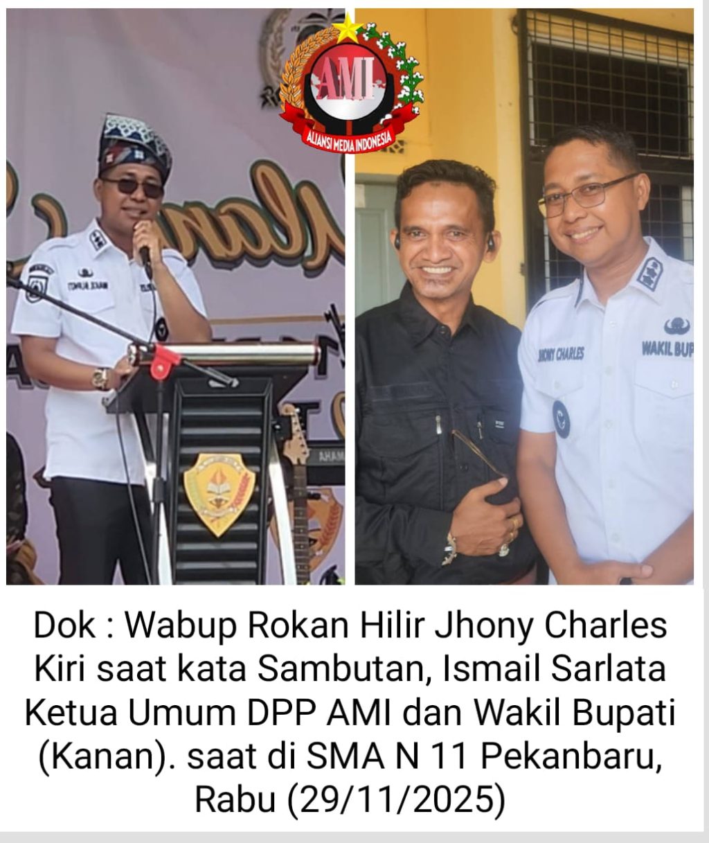 Pekanbaru — Wakil Bupati Rokan Hilir, Jhony Charles, BBA, MBA, yang dikenal sebagai salah satu putra terbaik asal Rokan Hilir, menghadiri peringatan Hari Ulang Tahun (HUT) ke-30 SMA Negeri 11 Pekanbaru, Provinsi Riau. Acara berlangsung meriah di halaman sekolah yang berlokasi di Jalan Segar, Kota Pekanbaru, dengan dihadiri para guru, siswa, dan alumni lintas angkatan.