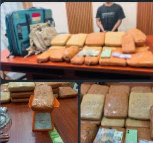 Petugas kemudian merobek salah satu paket dan memastikan isinya adalah narkotika jenis ganja. Tersangka langsung diamankan di lokasi.