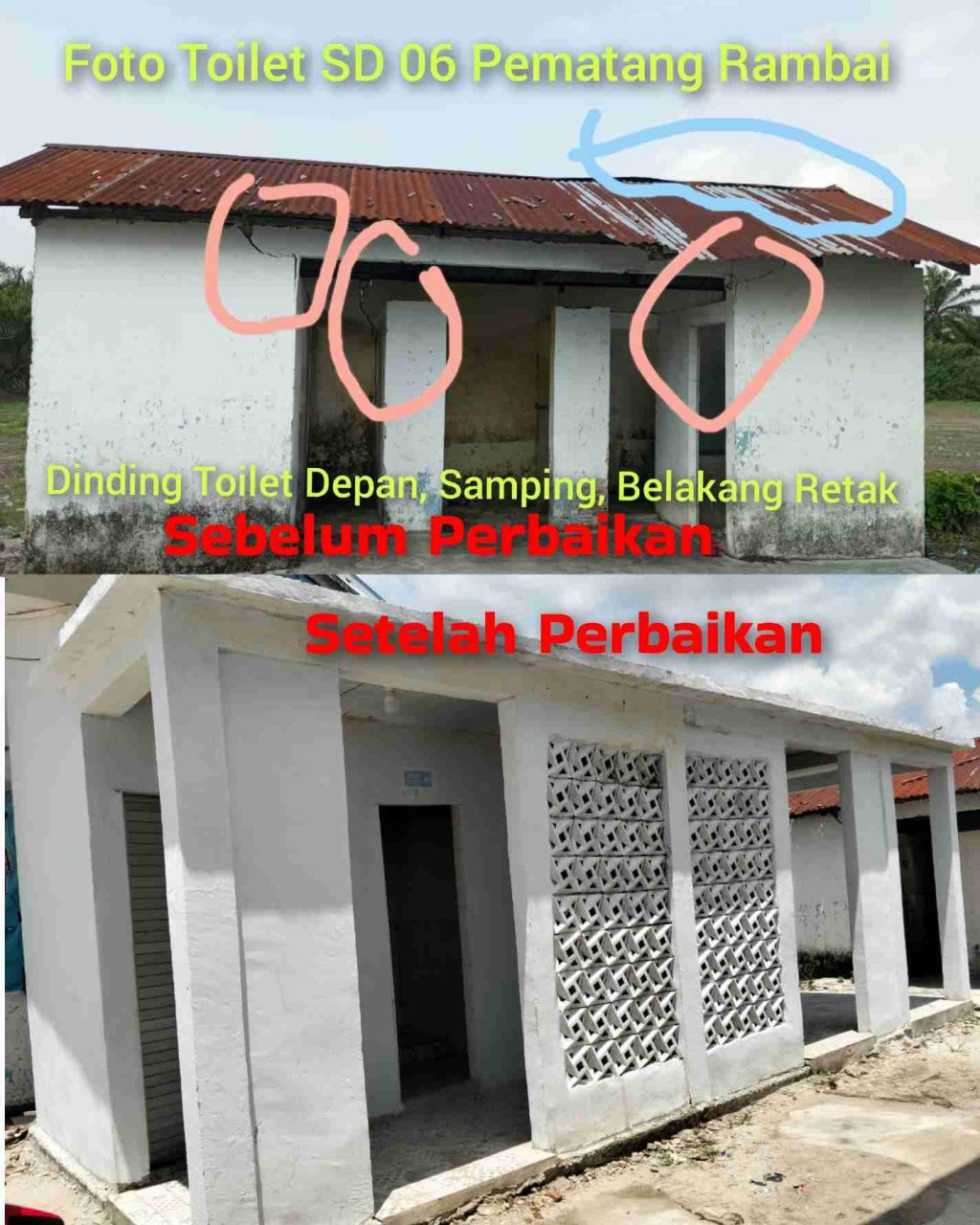 Berbekal koordinasi yang baik antara pihak sekolah dan Dinas Pendidikan, perbaikan pun segera dilaksanakan. Hingga akhirnya, pada bulan Juni 2025, toilet SDN 06 Pematang Pao telah selesai diperbaiki dan kini dapat digunakan kembali oleh para siswa.
