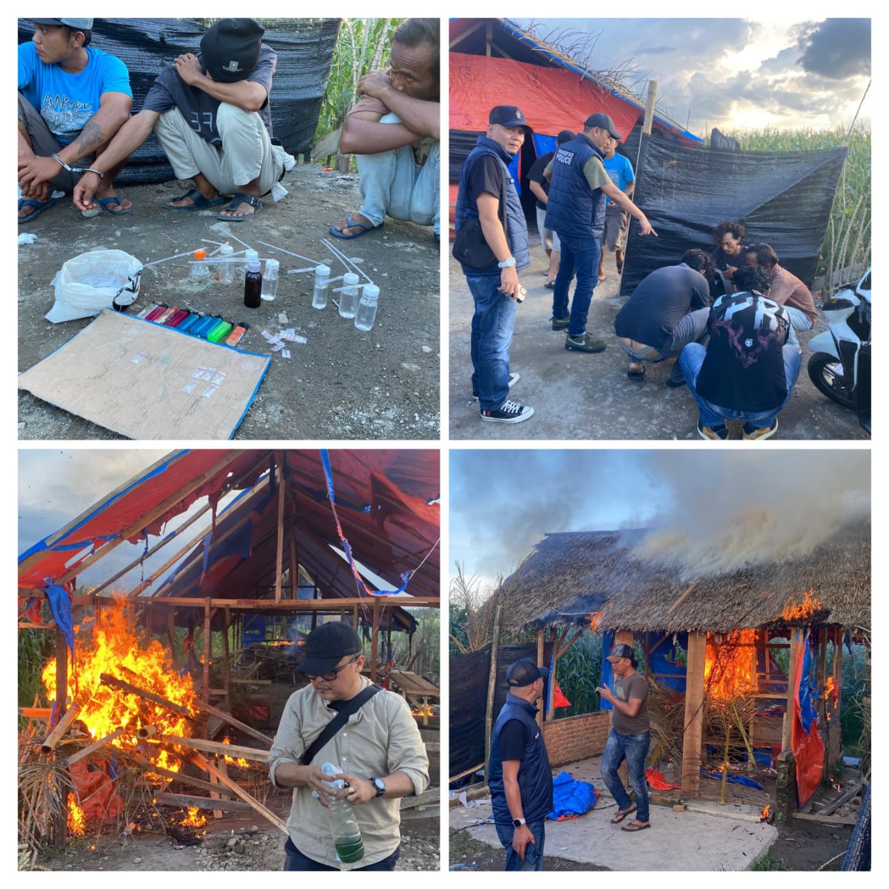 Kemudian petugas melakukan pembongkaran terhadap barak serta memusnahkannya dengan cara dibakar.Sedangkan terhadap ketiga orang laki-laki yang ditemukan di TKP bersama barang buktinya langsung diboyong ke komando Polres Binjai untuk dilakukan pemeriksaan lebih lanjut.