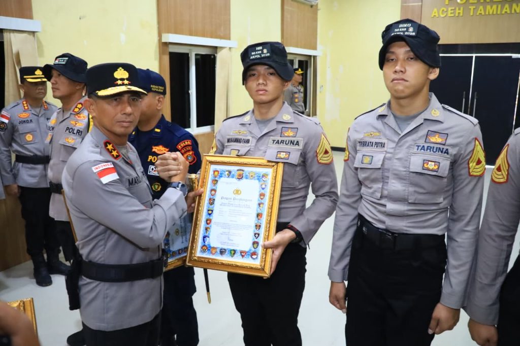 Penyerahan penghargaan tersebut berlangsung di Gedung Wira Satya Pradana, Mapolres Aceh Tamiang, Penghargaan itu sendiri diberikan sebagai bentuk apresiasi institusi Polri atas dedikasi, keberanian, dan kepedulian para taruna serta personel dalam membantu masyarakat pada masa tanggap darurat, Jum’at (06/01/26).