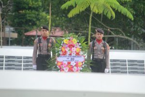 Suasana berlangsung penuh khidmat dan rasa hormat, mencerminkan semangat nasionalisme dan penghargaan mendalam terhadap jasa-jasa para pahlawan yang telah gugur demi bangsa.