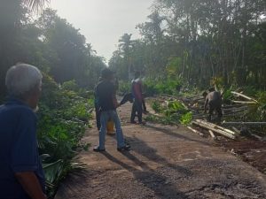 Aksi ini merupakan inisiatif warga tanpa campur tangan perangkat desa. Pohon‑pohon yang dianggap berbahaya telah dipotong, dan ranting‑ranting dibersihkan agar jalan tetap aman dilalui.