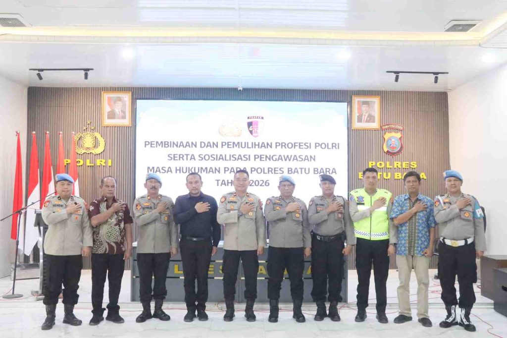 Batu Bara,Buser24.com – Dalam rangka memperkuat integritas serta profesionalisme personel Polri, Polres Batu Bara menggelar kegiatan Pembinaan dan Pemulihan Profesi Polri serta Sosialisasi Pengawasan Masa Hukuman Tahun 2026, yang berlangsung di Aula Sarja Arya Racana Polres Batu Bara, Jumat (23/1/2026) sekira pukul 10.00 WIB.